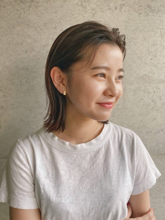 前髪も全体の動きと統一感を出してこなれボブヘアに