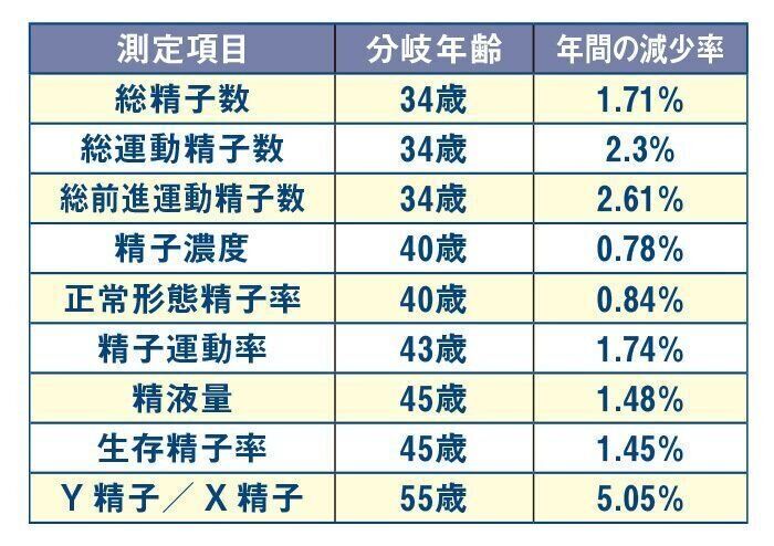 あまり知られていませんが、卵子と同様に精子も老化します。その分岐点は35歳ごろから。ここを境に精子の数は減少し、生殖能力が少しずつ下がっていきます。