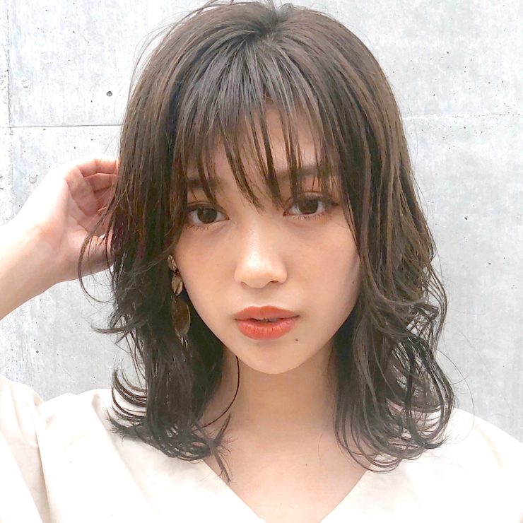 鎖骨ラインのミディアムヘアと水パーマは相性抜群。作り込みすぎない「脱力感」のあるウェーブが、大人の余裕と可愛らしさを演出します。結んだ時も毛先がくるんと動くので、簡単なアレンジでもオシャレに見えます。