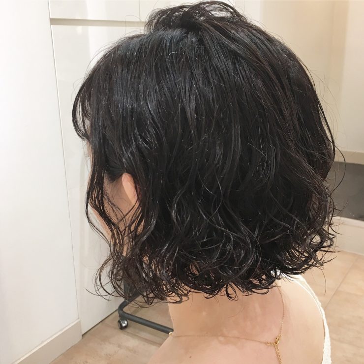 ゆるいパーマで動きを出してあげるとおしゃれ感がでます。どちらかというと重めの印象になりがちなボブスタイルですが、軽さが出て女性らしい印象に!
